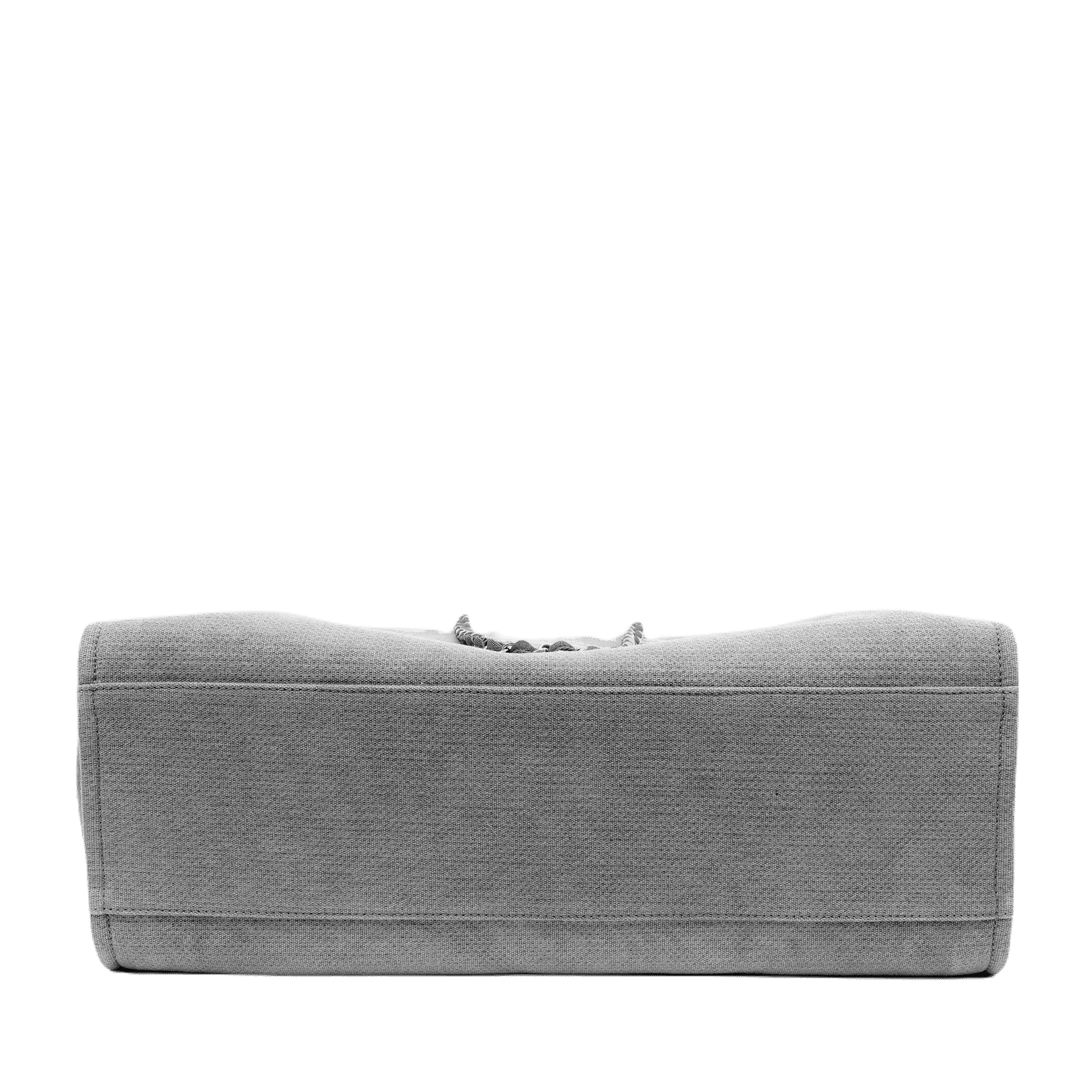 This authentic Chanel Grey XXL Deauville Tote is in pristine condition.  The iconic Chanel design is perfect for resort wear and travel.
