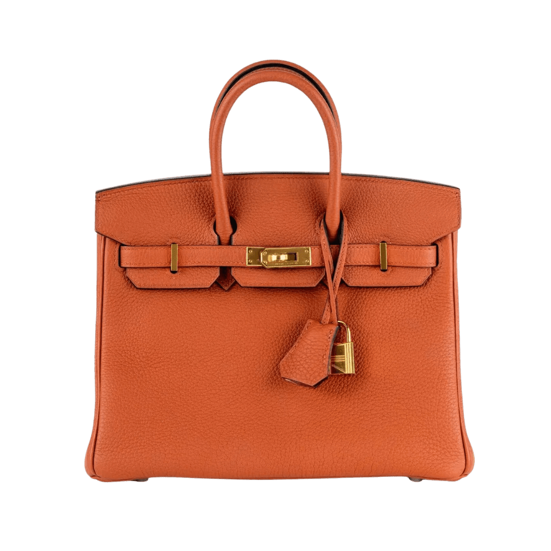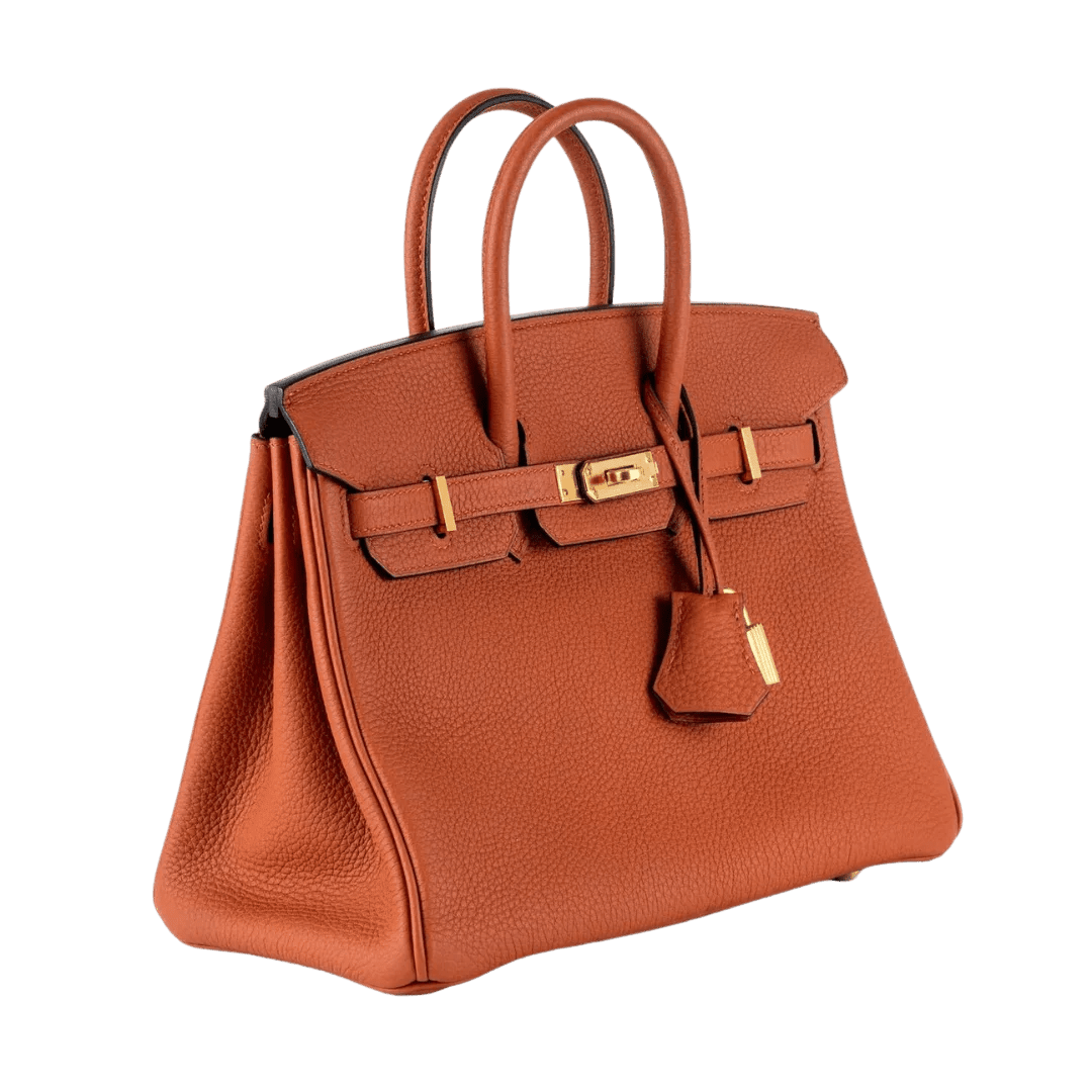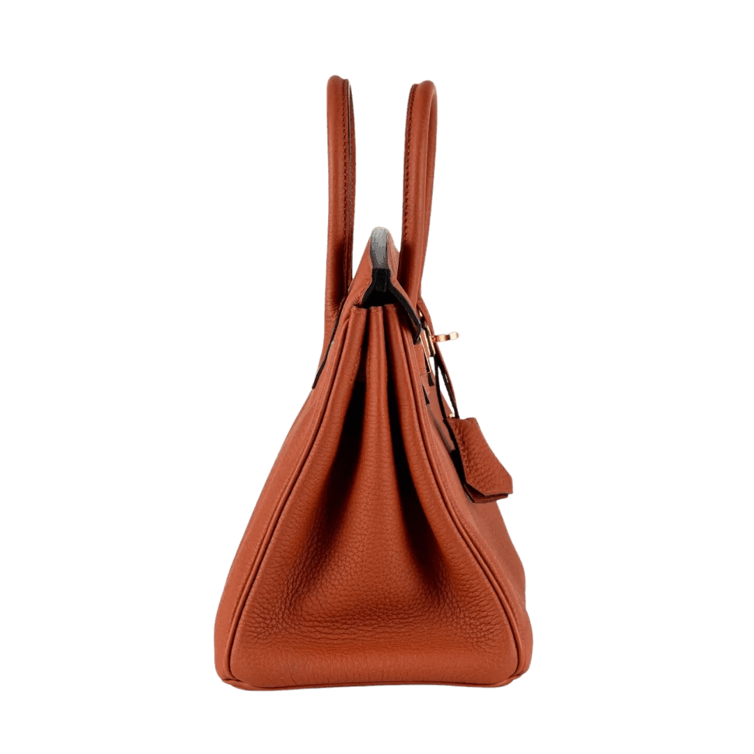 This authentic Hermès 25 cm Copper Togo Birkin is in pristine unworn condition. Hermès bags are considered the ultimate luxury item worldwide. Each piece is hand sewn with waitlists that exceed a year or more. In a striking orangey brown with gold hardware, the 25 cm Birkin is in extremely high demand.