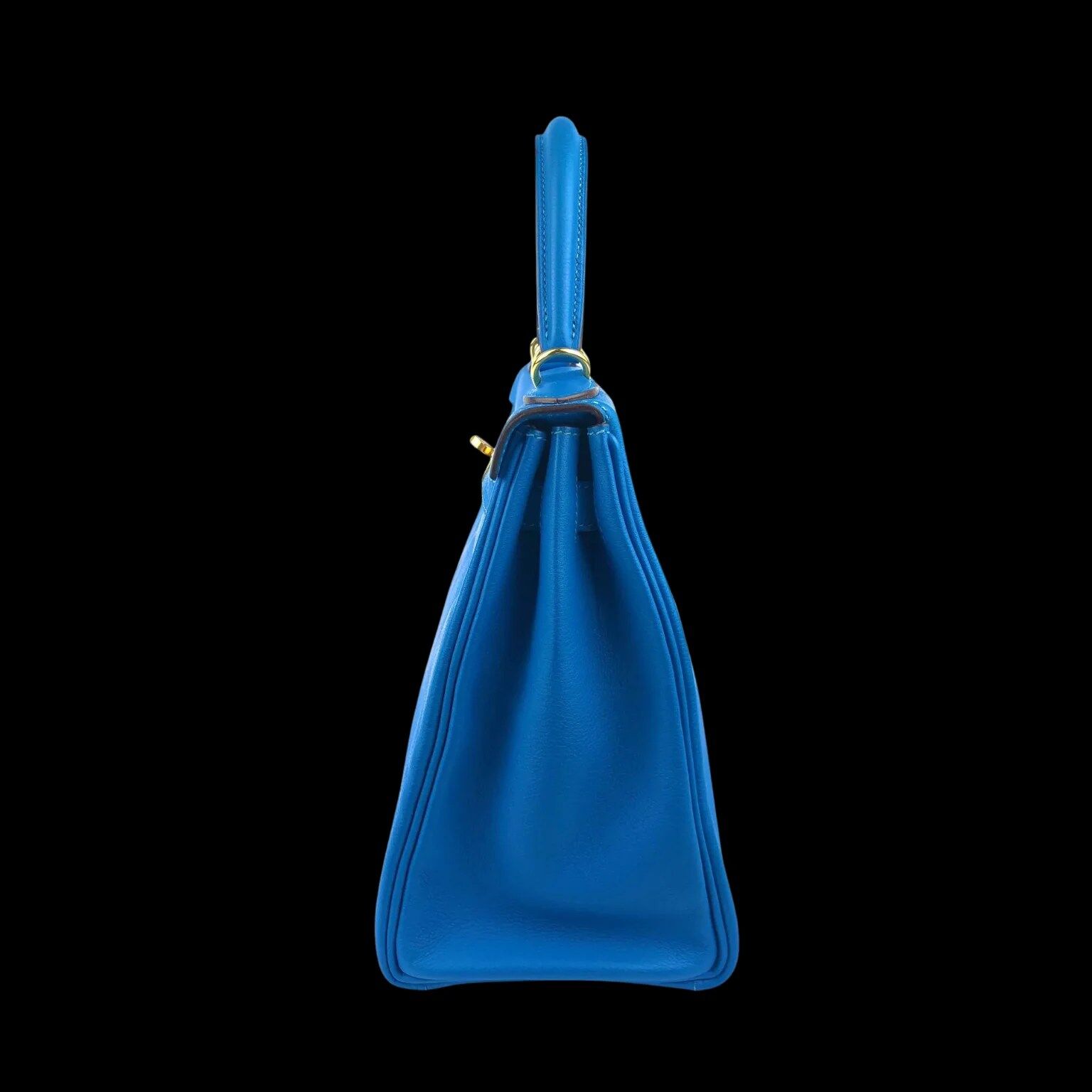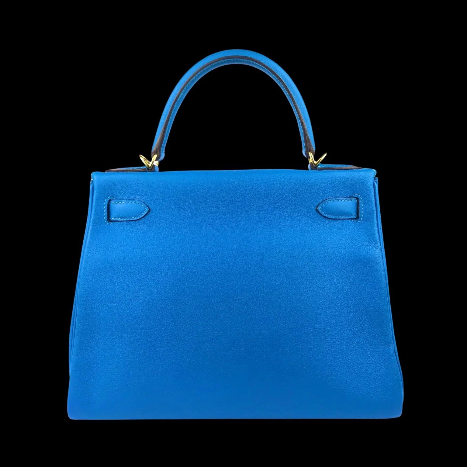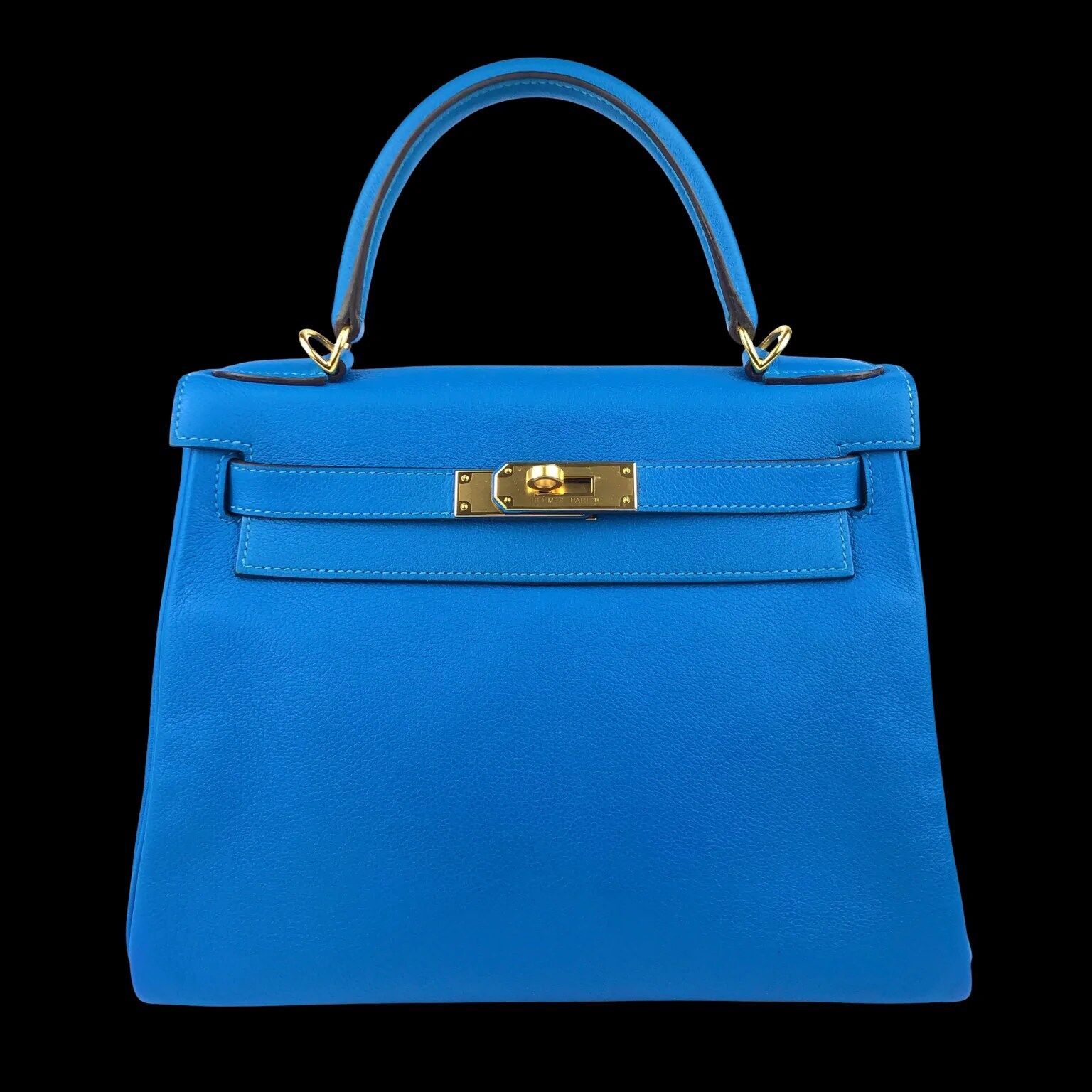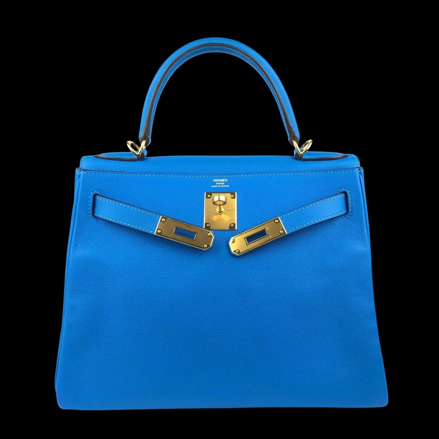This authentic Hermès Intense Blue Evercolor 28 cm Kelly is in pristine condition with the protective plastic intact on the hardware. Hermès bags are considered the ultimate luxury item worldwide. Each piece is handcrafted with waitlists that can exceed a year or more. The ladylike Kelly is classic and refined, a beautiful addition to any sophisticated wardrobe.
