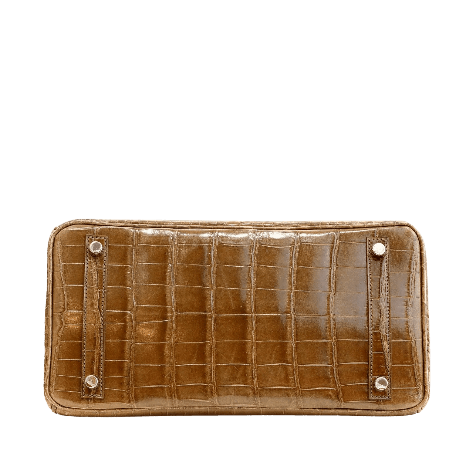 Porosus Crocodile is considered by many to be the premier Hermès skin.  It is characterized by a symmetrical scale pattern and denoted by the ^ symbol.  The skin is buffed by hand repeatedly to achieve the glorious sheen.  Only the finest skins are utilized showing every detail beautifully. Accented with sophisticated Palladium hardware. Double rolled handles are carried in hand or at the elbow.  Chevre (goat skin) lining with one side zippered pocket. Made in France.  Purchase includes padlock, keys, clochette and dust bags.