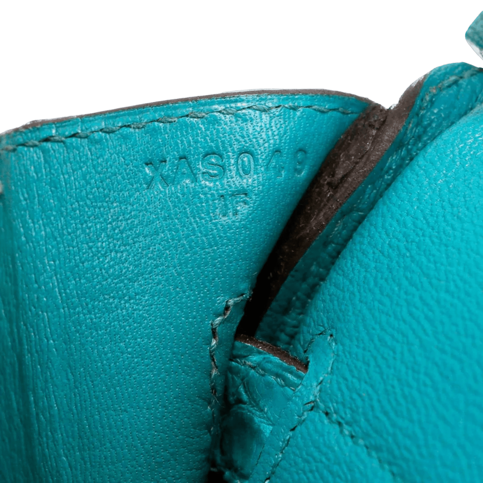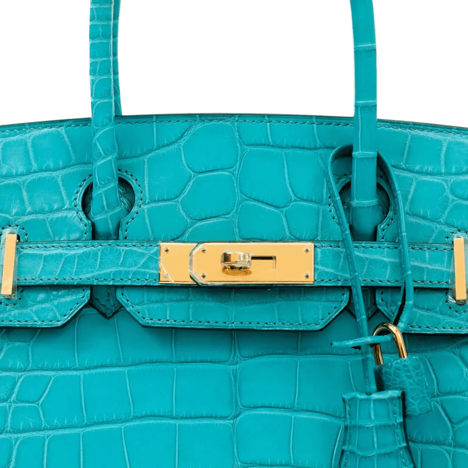 This authentic Hermès Blue Paon Crocodile 30 cm Birkin is in pristine unworn condition with the protective plastic intact on the hardware. Hermès bags are considered the ultimate luxury item the world over. Hand stitched by skilled craftsmen, wait lists of a year or more are commonplace for the leather versions. A crocodile Birkin is extremely rare and especially elusive in vivid turquoise Blue Paon with gold hardware.