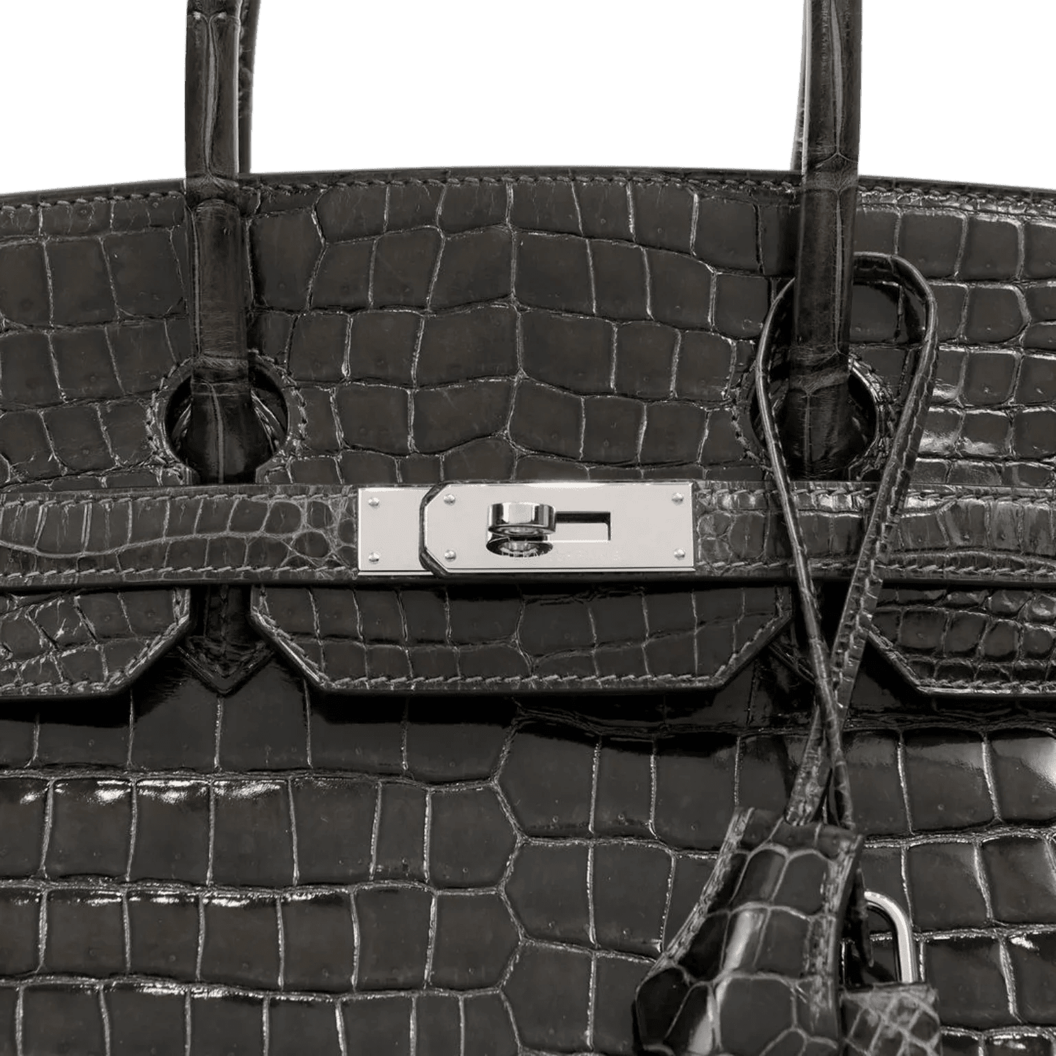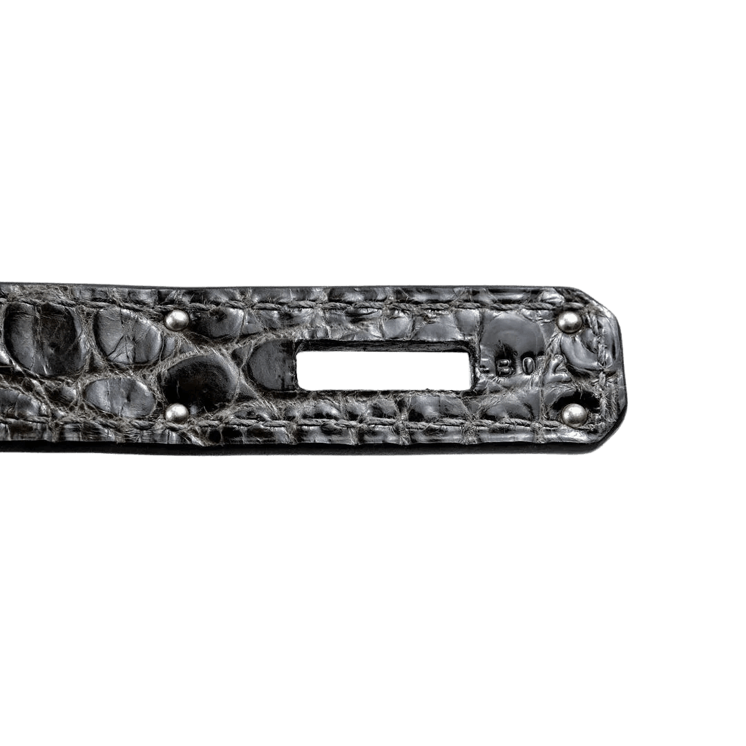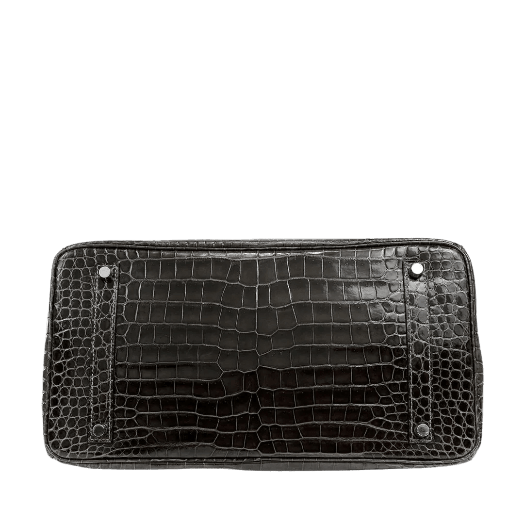 This authentic Hermès Graphite Crocodile 35 cm Birkin is in mint condition. Hermès bags are considered the ultimate luxury item the world over. Hand stitched by skilled craftsmen, wait lists of a year or more are commonplace for the leather versions. A crocodile Birkin is extremely rare and particularly desirable in lustrous Graphite crocodile with Palladium hardware.