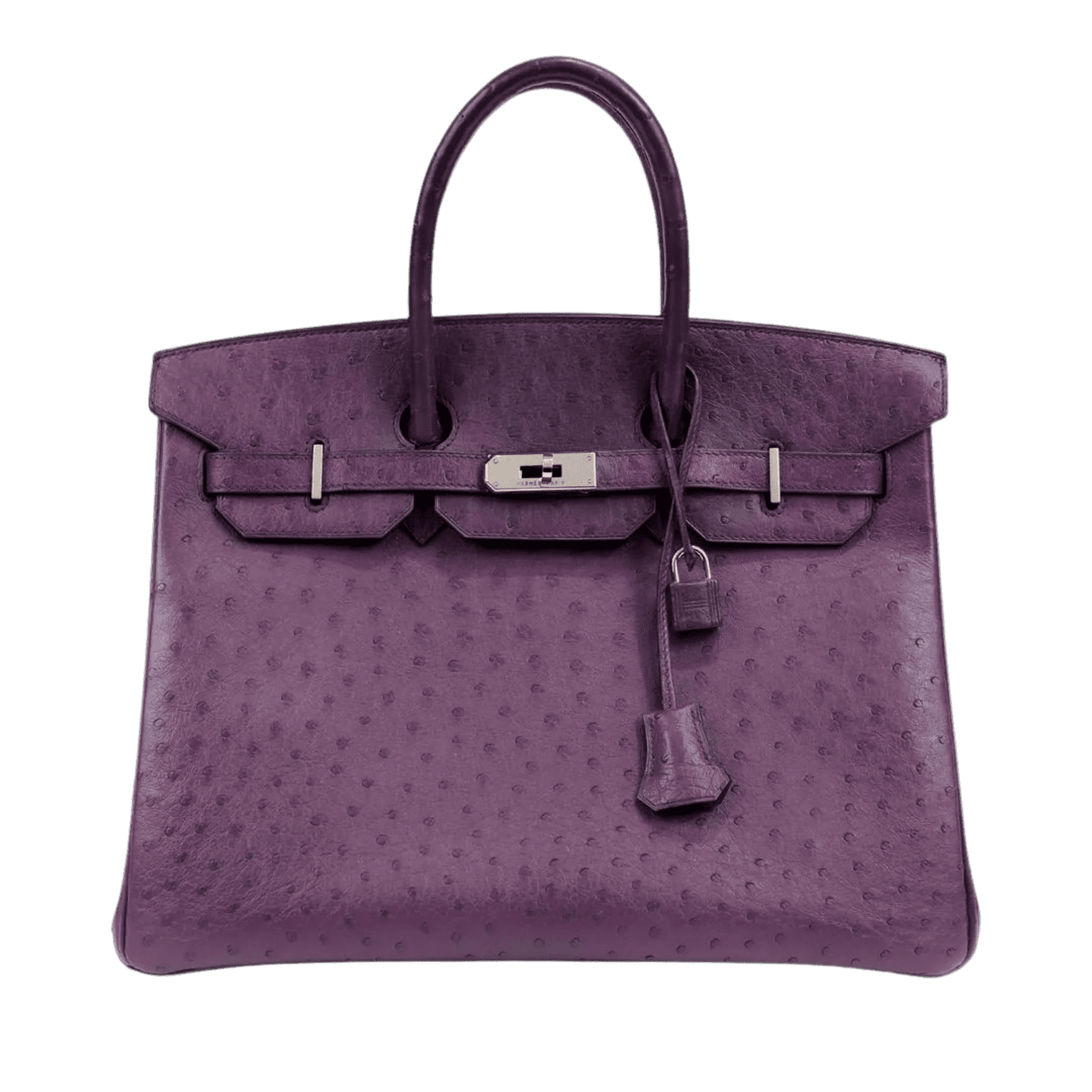 HERMÈS 35CM ULTRAVIOLET OSTRICH BIRKIN PALLADIUM HARDWARE