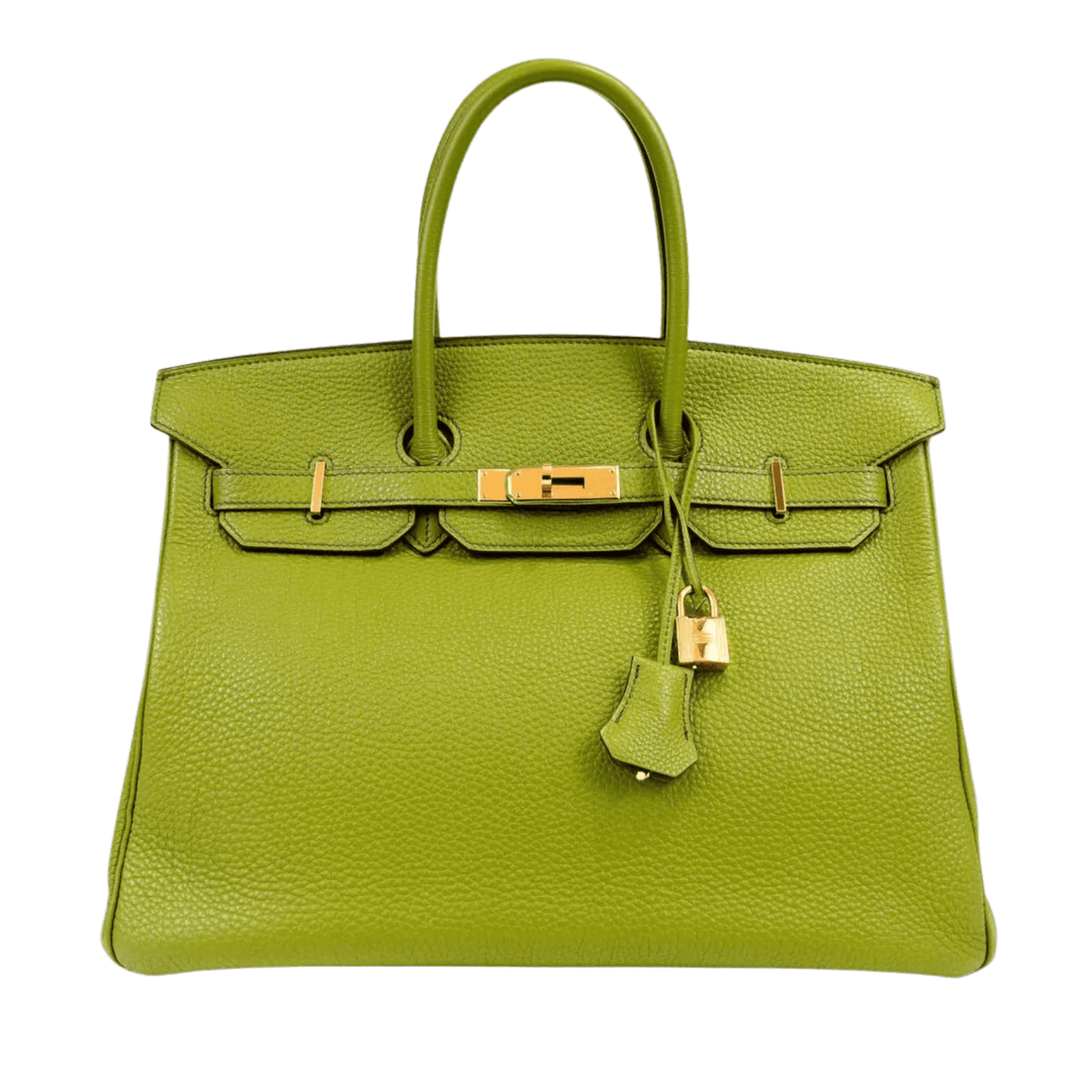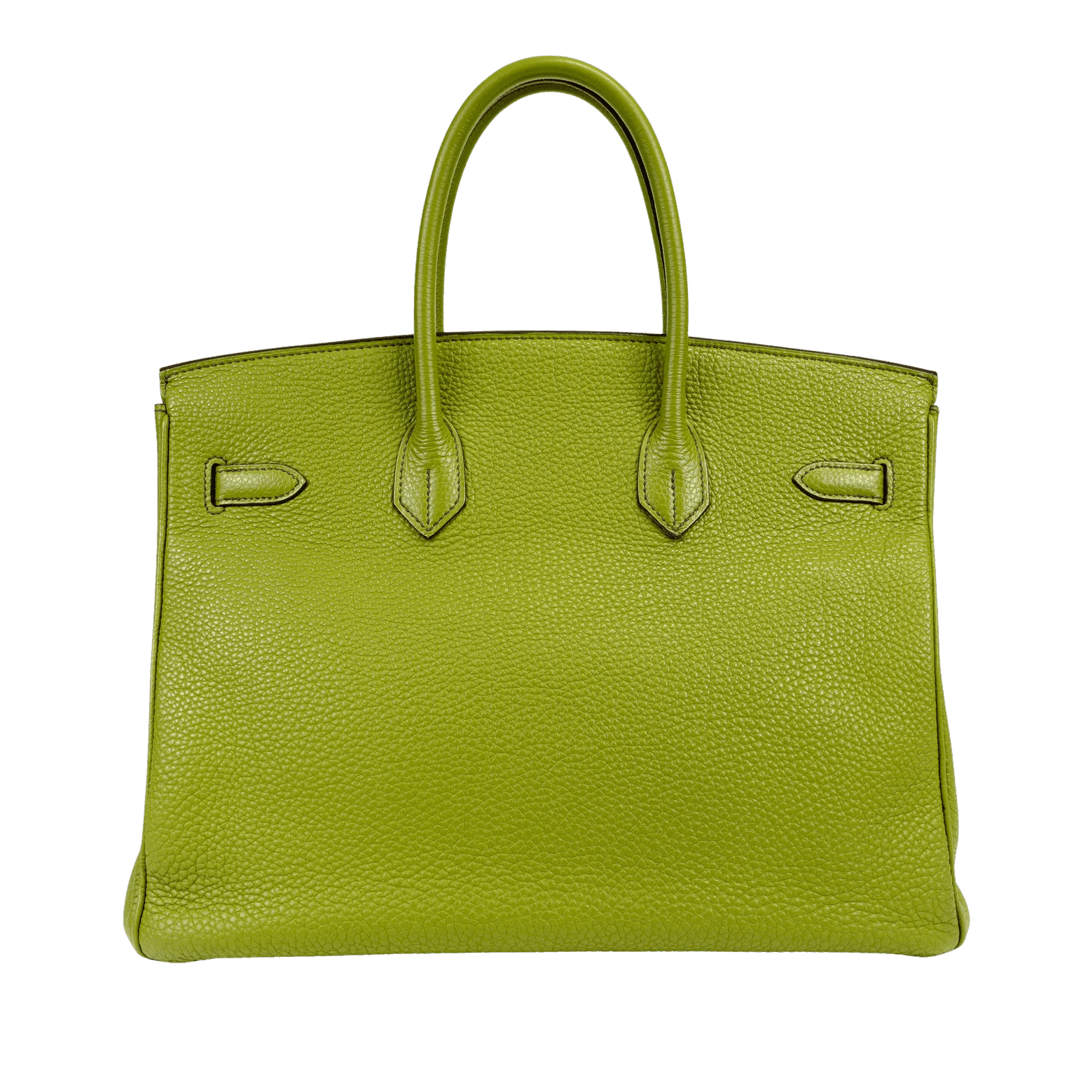 This authentic Hermès Green Togo 35 cm Birkin is in excellent condition. Hand stitched by skilled craftsmen, wait lists of a year or more are common for the Hermès Birkin. Glorious Granny apple green paired with gold hardware is a brilliant pop of color while also maintaining a neutral vibe.