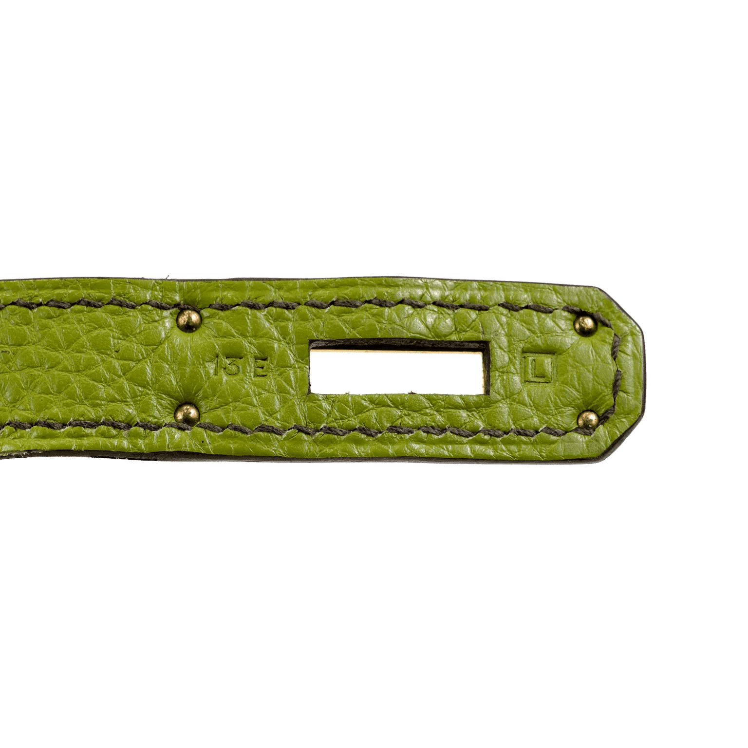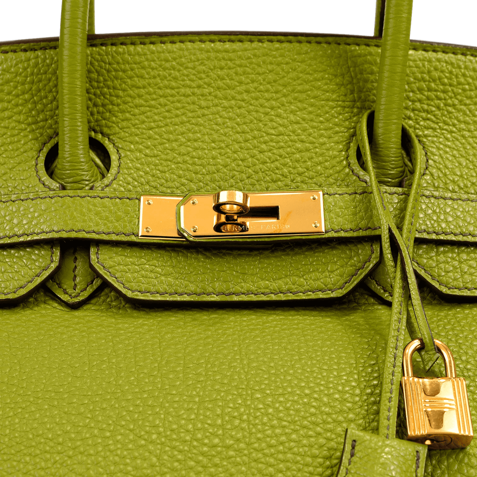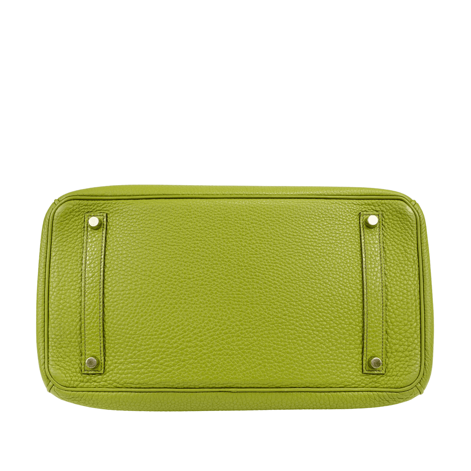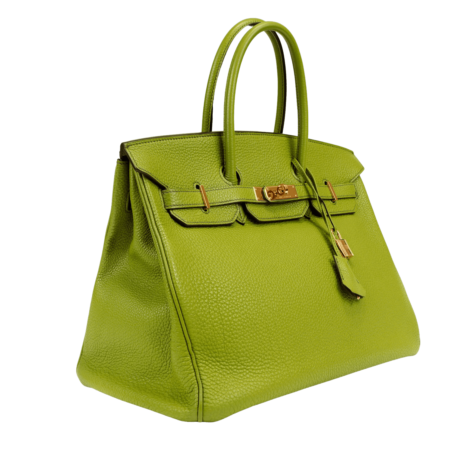 Textured green Togo leather is soft to the hand and scratch resistant. Double rolled handles are carried in hand or at the elbow. Green chevre (goat skin) lining with one side zippered pocket. L stamped within a square. Made in France. Purchase includes padlock, keys, clochette and dust bag.
