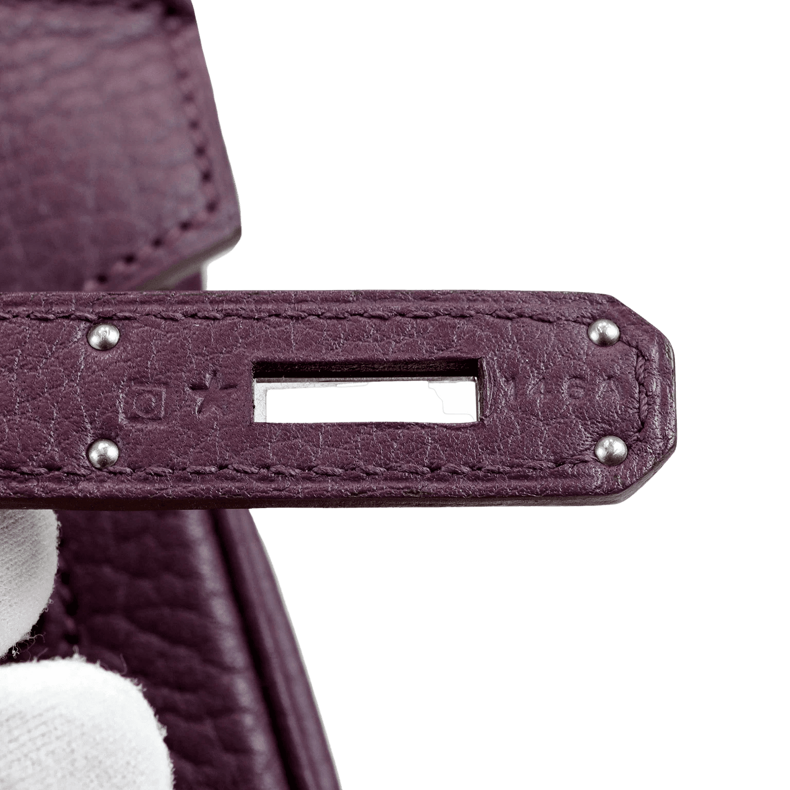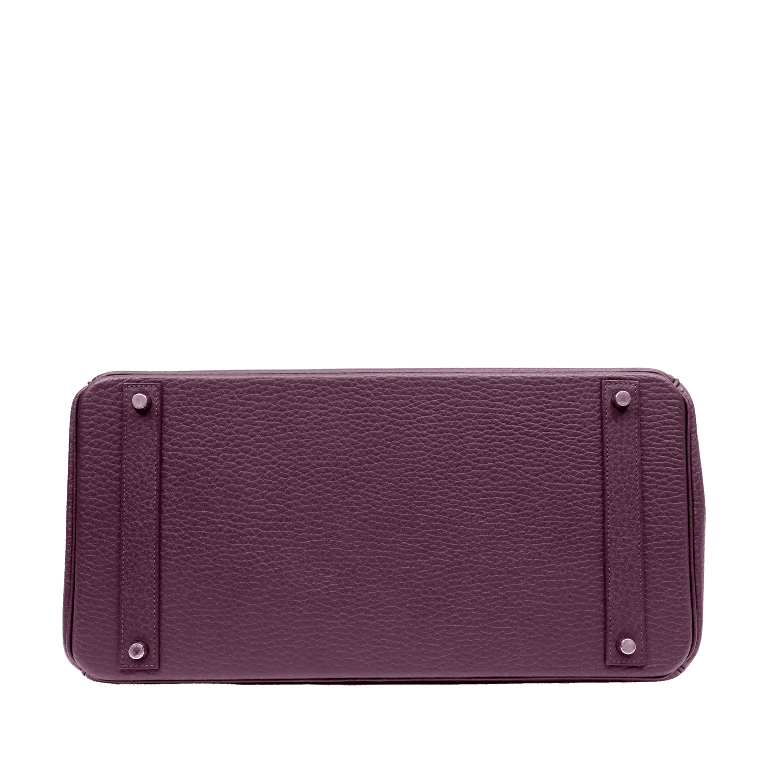 This authentic Hermès Violet Fjord Leather 40 cm Birkin is in pristine condition with the protective plastic intact on the Palladium hardware. Hermès bags are considered the ultimate luxury item the world over. Hand stitched by skilled craftsmen, wait lists of a year or more are common.