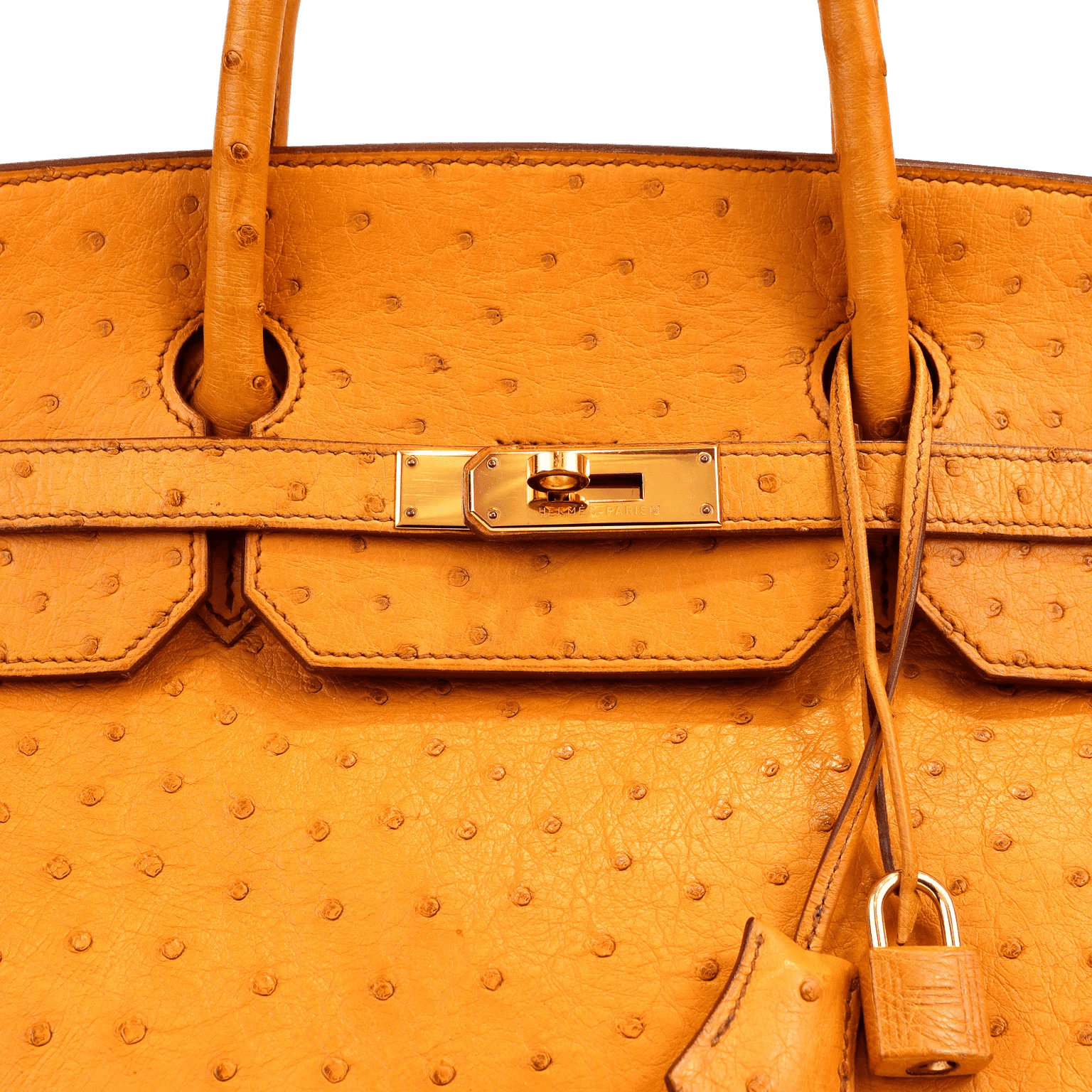The Sable Ostrich on this Birkin is a warm neutral honey color that pairs beautifully with most other colors. Perfectly highlighted with gold hardware. Double rolled handles are carried in hand or at the elbow. Natural Sable chevre (goat skin) lining with one side zippered pocket. Blind stamped A within a square. Made in France. Purchase includes padlock, keys, clochette and dust bag.