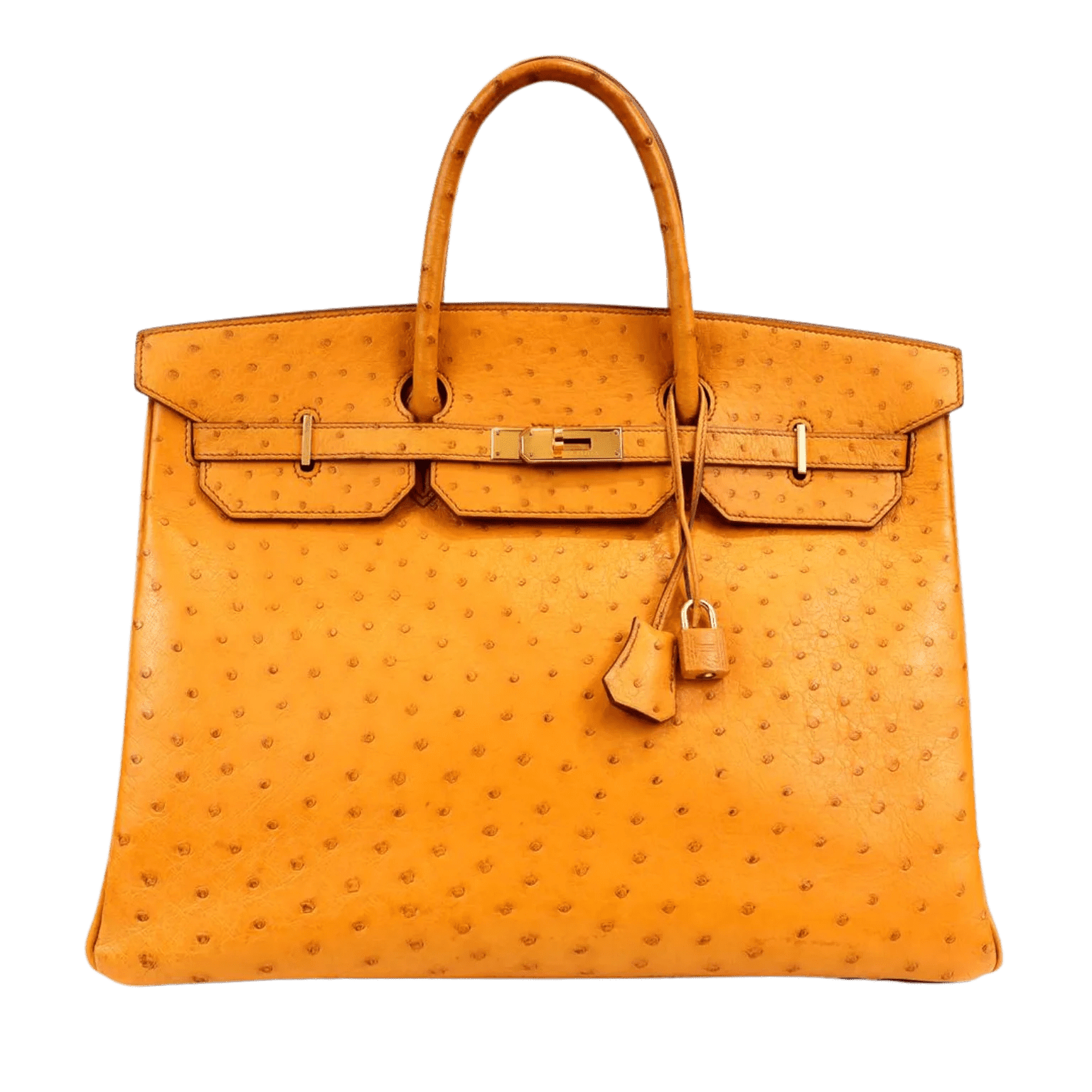 This authentic Hermès Honey Ostrich 40 cm Birkin appears in pristine condition from the 1997 collection. Hermès bags are considered the ultimate luxury item the world over. Hand stitched by skilled craftsmen, wait lists of a year or more are commonplace for the bovine versions. This particular Birkin is in Natural Sable Ostrich skin with gold hardware; a rare exotic that is extremely difficult to find.