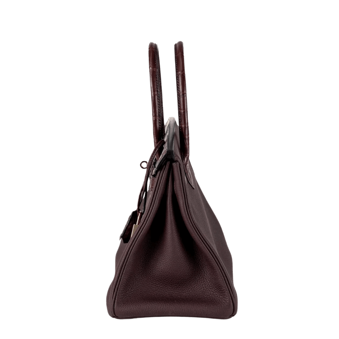 HERMÈS BURGUNDY CROC TOUCH 30 CM BIRKIN WITH CHAMPAGNE GOLD HARDWARE